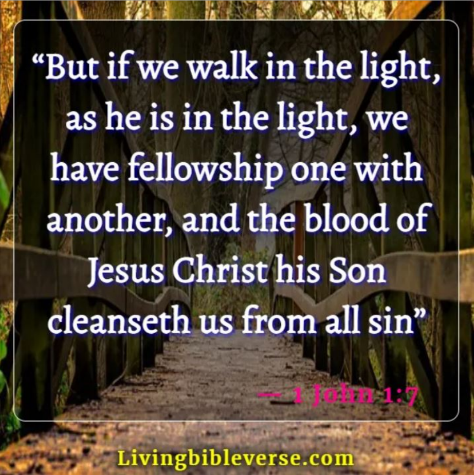 5 This is the message which we have heard from Him and declare to you, that God is light and in Him is no darkness at all. 6 If we say that we have fellowship with Him, and walk in darkness, we lie and do not practice the truth. 7 But if we walk in the light as He is in the light, we have fellowship with one another, and the blood of Jesus Christ His Son cleanses us from all sin. 8 If we say that we have no sin, we deceive ourselves, and the truth is not in us. 9 If we confess our sins, He is faithful and just to forgive us our sins and to cleanse us from all unrighteousness.