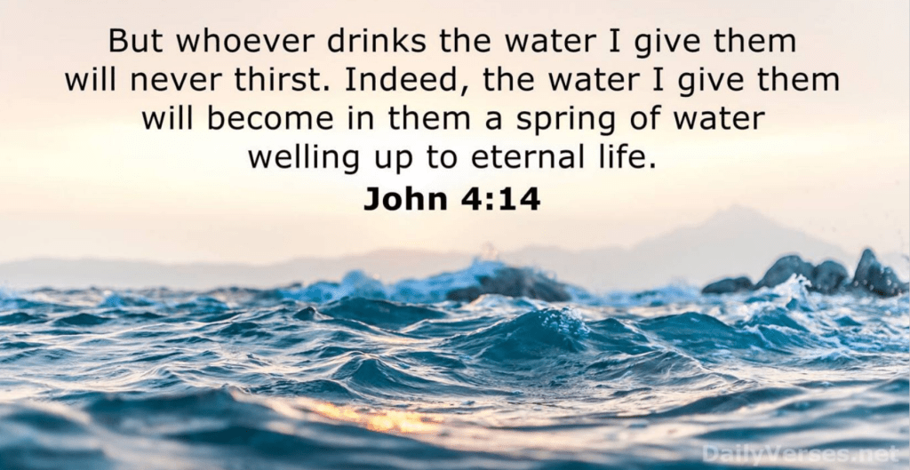 13 Jesus answered and said to her, “Whoever drinks of this water will thirst again, 14 but whoever drinks of the water that I shall give him will never thirst. But the water that I shall give him will become in him a fountain of water springing up into everlasting life.”