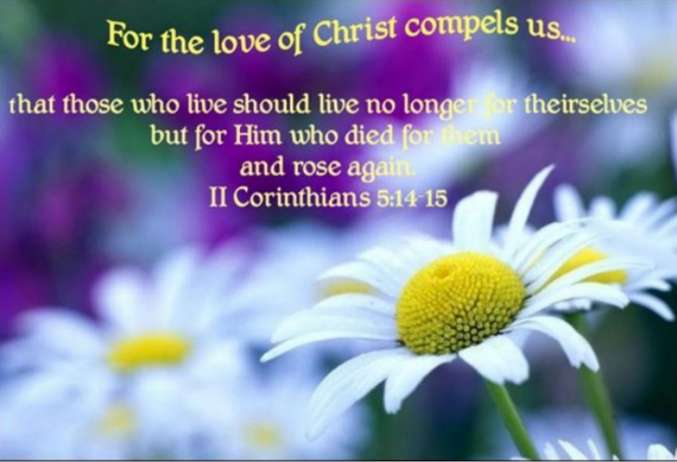 14 For the love of Christ compels us, because we judge thus: that if One died for all, then all died; 15 and He died for all, that those who live should live no longer for themselves, but for Him who died for them and rose again.