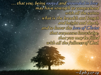 14 For this reason I bow my knees to the Father of our Lord Jesus Christ, 15 from whom the whole family in heaven and earth is named, 16 that He would grant you, according to the riches of His glory, to be strengthened with might through His Spirit in the inner man, 17 that Christ may dwell in your hearts through faith; that you, being rooted and grounded in love, 18 may be able to comprehend with all the saints what is the width and length and depth and height— 19 to know the love of Christ which passes knowledge; that you may be filled with all the fullness of God.