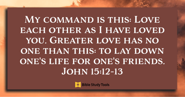 9 “As the Father loved Me, I also have loved you; abide in My love. 10 If you keep My commandments, you will abide in My love, just as I have kept My Father’s commandments and abide in His love. 11 “These things I have spoken to you, that My joy may remain in you, and that your joy may be full. 12 This is My commandment, that you love one another as I have loved you. 13 Greater love has no one than this, than to lay down one’s life for his friends. 14 You are My friends if you do whatever I command you. … 17 These things I command you, that you love one another.