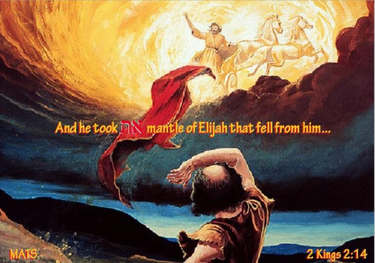 12 And Elisha saw it, and he cried out, “My father, my father, the chariot of Israel and its horsemen!” So he saw him no more. And he took hold of his own clothes and tore them into two pieces. 13 He also took up the mantle of Elijah that had fallen from him, and went back and stood by the bank of the Jordan. 14 Then he took the mantle of Elijah that had fallen from him, and struck the water, and said, “Where is the Lord God of Elijah?” And when he also had struck the water, it was divided this way and that; and Elisha crossed over.