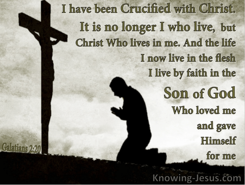 20 I have been crucified with Christ; it is no longer I who live, but Christ lives in me; and the life which I now live in the flesh I live by faith in the Son of God, who loved me and gave Himself for me.