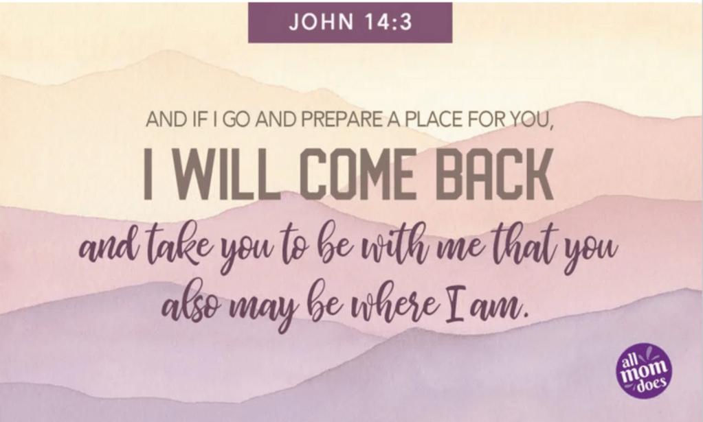 1 “Let not your heart be troubled; you believe in God, believe also in Me. 2 In My Father’s house are many mansions; if it were not so, I would have told you. I go to prepare a place for you. 3 And if I go and prepare a place for you, I will come again and receive you to Myself; that where I am, there you may be also. 4 And where I go you know, and the way you know.”