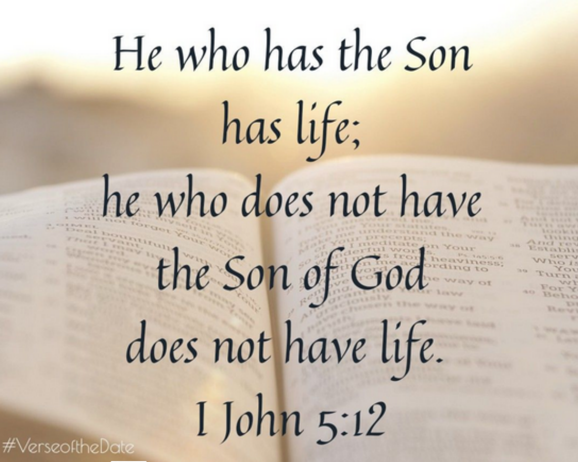 11 And this is the testimony: that God has given us eternal life, and this life is in His Son. 12 He who has the Son has life; he who does not have the Son of God does not have life. 13 These things I have written to you who believe in the name of the Son of God, that you may know that you have eternal life, and that you may continue to believe in the name of the Son of God.
