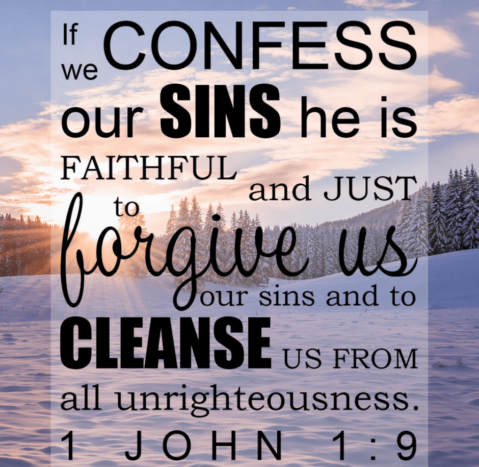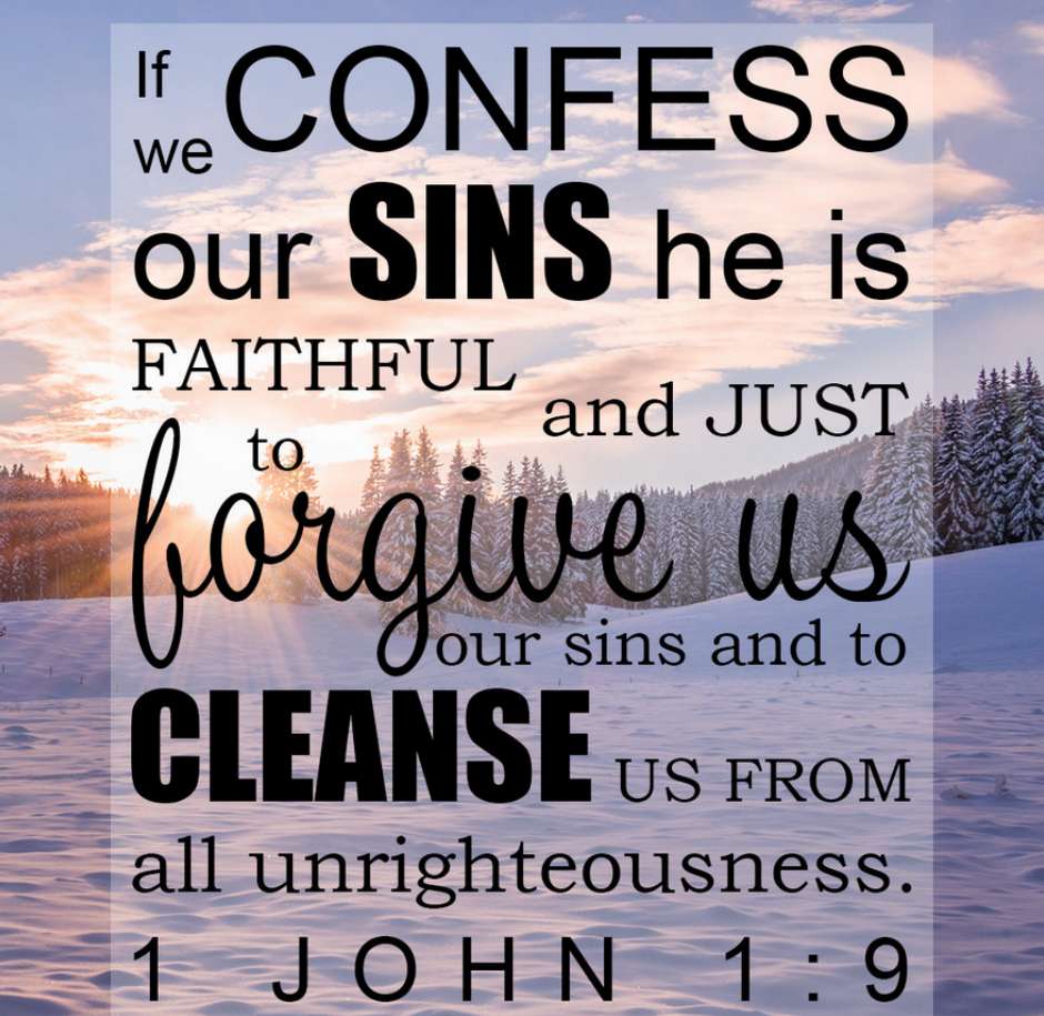 If we confess our sins, he is faithful and just and will forgive us our sins and purify us from all unrighteousness. 1 John 1:9 (NIV)